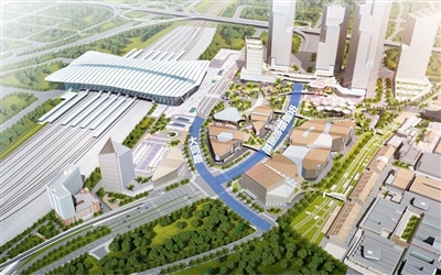 大同路(原站前路)及安顺路地面道路效果图(蓝色为此次通车路段)。地铁供图