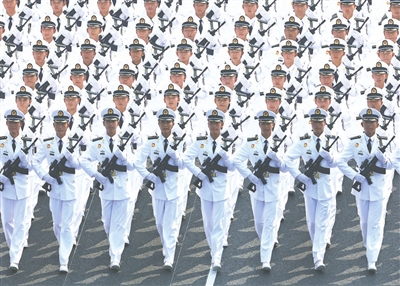 ▲踏浪蹈海,走向深蓝。9月3日上午,海军方队经过天安门广场,接受祖国和人民检阅。