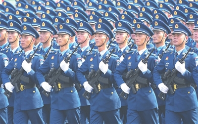 ▲空天一体,攻防兼备。9月3日上午,空军方队以昂扬的面貌、整齐的步伐,接受祖国和人民检阅。