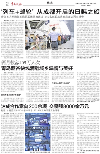 本报9月10日讯 “你好,同学,欢迎来到青岛。”清晨7时,在青岛地铁蓝谷快线青岛二中站,浸润着海风与诗意的开学季广播,吸引了乘车人注意。这条串联起青岛主城区与即墨区的轨道,不仅是驶向未来的“教育线”,更藏着央视镜头里的春日浪漫、摄影师相册里的民生温情、大学生心底的创业希望,让每一趟穿梭都成为山海间的美好相遇。今年旅游旺季期间(7-8月),蓝谷快线以405万人次的客流量,成为连接城市与美景的“幸福通道”。