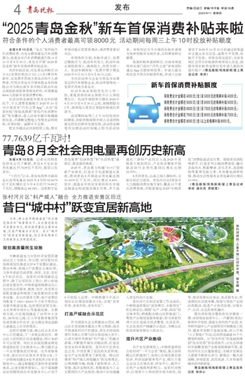 本报9月10日讯 “金九”是传统汽车消费旺季,为充分释放青岛汽车消费潜力,促进全市汽车消费提速升级,9月10日至9月30日,青岛市开展“2025青岛金秋”新车首保消费补贴活动。