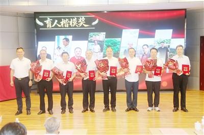 青岛五十八中校长严贤付(左一)为获得“育人楷模奖”的教师们颁奖。学校供图