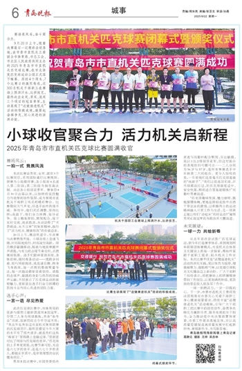 9月20日上午,随着决赛最后一记精彩击球落地,由市委市直机关工委联合市体育局、市总工会、市北区人民政府共同主办的2025年青岛市市直机关匹克球比赛,在市北体发匹克球运动公园正式落下帷幕。历经4个周末、7个比赛日的激烈角逐,近300名机关干部职工在赛场上挥洒汗水、比拼技艺,最终决出女双、男双、混双三个项目的冠亚季军,生动展现了“送健康进机关”活动的积极成效,凝聚起奋楫争先、同心共进的澎湃动能。