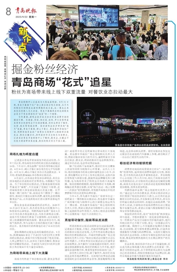 明星的粉丝应援活动同样会拉动商场消费。记者盘点万象城、万象汇、西海岸利群金鼎广场举办的粉丝应援活动发现,几乎所有商场都会提出相应的优惠促销活动。西海岸利群金鼎广场企划部相关负责人介绍:“粉丝应援活动对餐饮业态拉动作用最大,大家在参加完应援活动之后通常会在商场聚会,各大餐饮门店就是最好的场所,我们通过调查测算发现,粉丝们的购买力并不低,他们通常会选择像日料、粤菜等客单价较高的门店。”