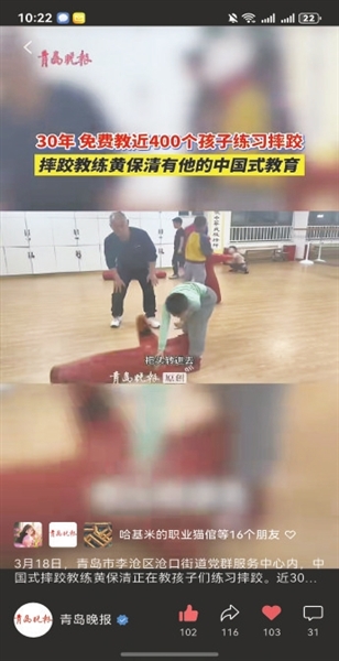 获评“助人为乐”文明市民的黄保清今年56岁,他是一名电焊工,也是一位中国式摔跤爱好者。自1996年至今,黄保清白天在工厂干活,晚上坚持义务传授中国式摔跤技艺,29年来带出400多名徒弟。如今,黄保清定期在李沧区沧口街道新时代文明实践所教孩子们摔跤,培养中国式摔跤的传承者。