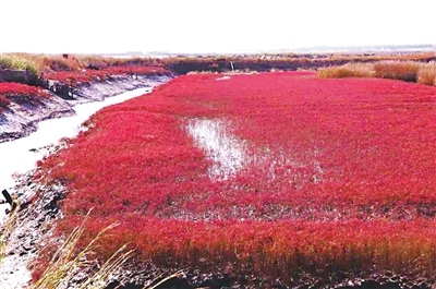 城阳胶州湾湿地的“红海滩”。张文浩 摄