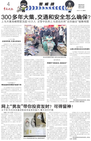 热闹繁华的背后,离不开安全和畅通。在“交所融合”勤务模式全力推行的背景下,上马派出所和交管城阳区大队努力探索,他们的辖区实现了电动自行车三轮车的交通事故起数和刑事案件数双双下降。11月12日,记者来到上马大集现场探访。