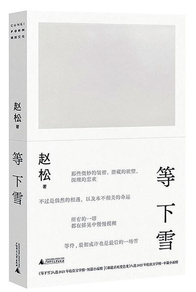 《等下雪》收录了赵松新近创作的七篇中短篇小说,包括《等下雪》《猫不会掉头》《葬礼》《谁能杀死变色龙》《酒友》《恐龙会跳舞》《高山流水》。赵松以克制笔触描摹现代人的精神困境。