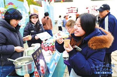 活动现场还弥漫着地道的青岛风味。从开海的海鲜水饺、麻辣小海鲜,到融合非遗技艺的吕氏速食疙瘩汤,再到陪伴一代代人成长的青食钙奶饼干、独特滋味的崂山可乐……这些经典青岛味道深受无锡市民欢迎,成为最亲切的“文旅大使”。“开海”是青岛做本源海鲜美食的“领航者”,招牌虾水饺“一只水饺,两尾整虾”荣获青岛十大名小吃,是外地游客必吃的青岛海鲜饭馆。“吕氏速食疙瘩汤”根据吕氏疙瘩汤堂食畅销品、青岛市市南区非遗小吃海鲜疙瘩汤研发的方便速食产品,在2025中国特色旅游商品大赛中斩获金奖。中国第一瓶碳酸饮料——崂山可乐,结合中国人体质及引用习惯研发,具有健脾暖胃、温胃降逆的功效。青食钙奶饼干是诞生于青岛的中华老字号国民食品,被许多山东人亲切地称为“长高的秘密”,其强势出圈是老字号品牌延续“经典传承+创新破圈”策略的生动注脚。
