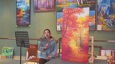 一年的免费培训结束后,二十多名学员选择留在画院工作室继续创作。黄秀芹从2024年10月开始承接订单,从三四十厘米的小幅作品起步,如今已能独立完成一米半到两米的大幅画作。“现在不仅能赚钱,还能做自己喜欢的事,以前连想都不敢想。”她开始探索综合材料创作,希望未来能形成自己的艺术风格。