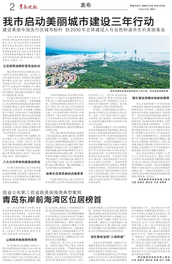 实施山海一体、多元生态系统修复。青岛深入践行“两山”理念,系统性推进山体生态修复。严格落实海岸线退缩制度,高质量完成大公岛、小麦岛等关键区域生态修复项目。常态化开展增殖放流。设立大公岛省级自然保护区,持续开展“挽留海鸥”专项行动。同时,打造移步换景、全民共享亲海空间样板。高标准升级改造海水浴场,建成贯通式滨海慢行道及系列滨海公园,构建起“山海城”联动的绿色生态廊道,让公众切实享受到“可触摸、可感知”的生态海湾成果。推动生态文旅深度融合,成功举办海鸥文化节,精心推出“海上游青岛”特色线路,打造“船岸联动”消费新引擎,助力青岛建设国际知名旅游胜地。