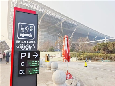 29日上午,记者来到青岛北站东广场。距离进站口不远处,清晰的指引牌将网约车和出租车引导至停车接客区域,牌子上还实时显示停车位信息。从青岛北站地铁A出入口乘扶梯下至B1层,右手边便是网约车乘车区。现场有身穿红马甲的志愿者值守,随时为乘客提供指引和帮扶。