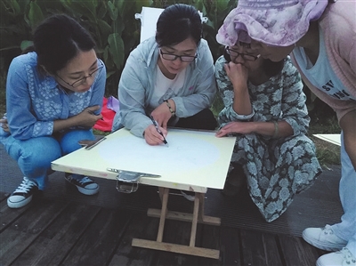 李增梅(中)带着学生在达尼村写生。 李增梅供图