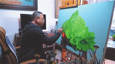 艺术家鹿成君与达尼村的结缘则带着一丝偶然。在济南工作七年后,他经友人推荐前来考察,一踏入这片土地便被深深吸引。“当时村子还叫大泥沟头,虽显简陋,但山水相依的景致和淳朴的民风特别动人。”他当即决定留下,成为绿泽画院的一员,后来更在村里建起自己的工作室,实现了生活与创作的一体化。这么多年来,他始终扎根于此,从村民讲述的老故事、村里寻见的旧器物中汲取灵感,将柿子、古物等题材画得既有传统寓意,又充满乡土温情。“和村民聊天,听他们小时候的事,这些都能入画。”尽管不少同行因各种原因离开,他仍选择坚守,“现在网络方便,在这里反而更能静心画出好作品。”