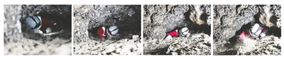 2025年12月,航天员开展洞穴训练艰难爬过狭窄管洞(拼版照片)。新华社发