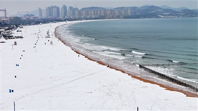 细腻的雪花铺满海岸,金沙滩化作松软的雪绒毯。梁超 摄