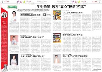 学生为写出“好”作文,编造“扶老奶奶过马路”或“雨中送伞”等好人好事;描写公园游玩时以“今天真开心”结尾,被老师批注“思想深度不够”……面对以上情况,我们不禁思考:写作的第一课应该学习“真诚的表达”,还是掌握“恰当的虚构”?学生的笔,该写“真心”还是“范文”?本期“名师开讲”,六位老师共同探讨作文教学的起点在哪里。