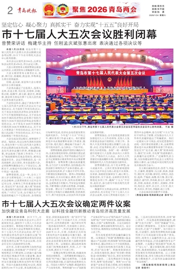 本报1月23日讯 23日下午,市人大常委会在市直机关会议中心召开新闻发布会,通报市十七届人大五次会议议案情况。根据地方组织法、代表法和市人民代表大会议事规则有关规定,市十七届人大五次会议决定:将“关于加快建设青岛科创大走廊的议案”和“关于以科技金融创新推动青岛经济高质量发展的议案”作为会议议案,在闭会后交市人民政府研究办理。