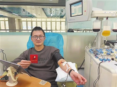 青年献血者赵猛,早已是无偿献血路上的“老将”。他累计献血141次,已跻身“百次功勋献血者”行列。这一天,他踏着积雪早早来到血站,再次完成单采血小板捐献。