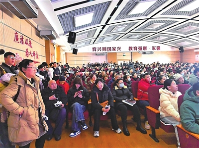 1月31日上午,青岛五十八中举行今年首场“校园开放日”活动,两千余名初三学生和家长踏入校门。三个小时的“探校”活动内容丰富:在校园文化讲座中,学校相关负责人详细介绍了办学特色和招生政策;学校物理、化学学科命题专家带来自招备考指导。现场的学校体育馆,初中生和家长坐得满满当当,认真聆听,不时记录讲解的内容。