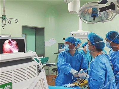 青岛市城阳人民医院脊柱外科主任李亮介绍,UBE技术即单侧双通道内镜技术。手术通过在患者背部做两个约1厘米的微小切口建立通道:一个通道置入内镜照明和成像系统,提供清晰放大的手术视野;另一个通道置入各种精细器械,进行椎间盘切除、神经根减压等操作。