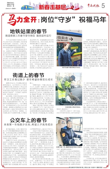 当记者询问他的新年愿望,他想了想说:“最大的愿望就是家里人都平安健康。希望大儿子工作能够稳定,小儿子学习上加把劲、考个好大学。”虽然春节不能回老家团圆,但青岛这座城市给了他许多温暖。“公司对家在外地的职工很照顾,节后可以调休回家。同事们也很热心,常问我有没有什么困难。”高耀华说,“乘客们也很友善,有时候上车时会特意说句‘师傅辛苦了,过年好’。这些点点滴滴,都让人心里暖和。”高耀华告诉记者,来青虽然还不到一年,但青岛让他找到了家的感觉。