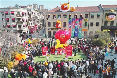 青岛群众文化工作者为市民和游客送上新春祝福。