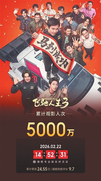 2026年春节档票房(含预售)突破50亿元,连续8年实现春节档观影人次破亿。在春节档的强劲带动下,2026年全国年度电影总票房超越北美,暂列全球单一市场票房冠军。