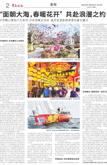 3月,是马年新春的首个踏青之月,青岛市文化和旅游局围绕“面朝大海,春暖花开”主题,深度整合踏青赏花、民俗节庆、购物市集、文博展览、文艺演出、亲子研学、体育赛事等全市文旅资源,精心策划六大系列、216项重点活动,以“春暖”为引,以“花开”为媒,以“大海”为舞台,邀请市民游客共赴一场浪漫缤纷的春日之约。