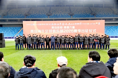 3月4日下午,青岛海牛足球俱乐部2026赛季出征仪式在城阳区青春足球场举行。