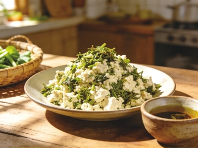 香椿芽拌豆腐:春日的仪式感,从一盘香椿芽拌豆腐开始。当紫红的香椿芽在沸水中转青,那股独特的香气便被彻底唤醒。福兴老豆腐以传统卤水点制,质地紧实而不柴,豆香浓郁且久拌不碎。只需一勺盐、几滴香油,福兴老豆腐的醇厚豆香便与香椿的霸道鲜气达成微妙平衡。