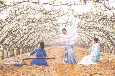 为增强游客参与感与体验感,本届梨花节还增设了诸多互动类体验环节:梨园中搭建戏台,供戏曲票友、演员表演娱乐、拍照打卡;游戏区设置投壶、掷飞机、吹乒乓球、九宫格等互动游戏,每完成一个领取一张打卡贴,可在9月份秋梨采摘节领取大梨两个;诸多本地名家、校园书画爱好者也将驻场创作,以梨花、梨树、莱西田园风光、乡村振兴美景为核心题材开展毛笔书法、国画写意、梨花小品、篆刻题字、扇面绘梨等沉浸式创作展示。游客朋友也可以亲自前往描绘长卷区,在喷绘布上用彩笔描绘春天。