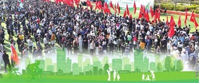 健步行大军穿行绿道气势磅礴。