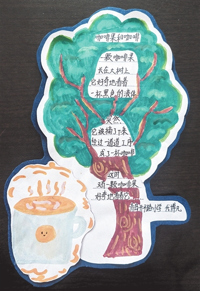 ▶指导老师徐苗苗点评:每一个读者都应该有自己的阅读体会。我体会到小作者把咖啡果写成一个好奇的孩子,从仰望一杯咖啡到自己经历蜕变也成为咖啡,再到被下一颗咖啡果仰望,循环的画面很治愈,寓意成长是一个从仰望别人到自己也成为光的过程。
