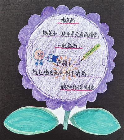 ◀指导老师徐苗苗点评:这首诗构思特别巧妙,充满童真又富有哲理。诗歌既写出了铅笔与橡皮相伴合作的关系,也暗含了包容错误的美好寓意。小作者把橡皮修正错误的过程,诗意地说成“画完剩下的画”,视角新颖又温暖。这首诗告诉我们,橡皮也是画的作者!每一个付出努力的人都应该被看见。
