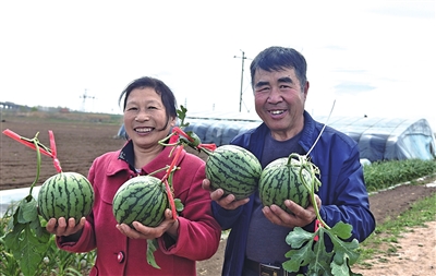 施肥也有讲究。李银业家有5个大棚,棚与棚之间有2米多宽的空地,高秆作物种不了,他就种上大豆。等大豆成熟,磨成粉,掺进土里喂西瓜。“去年自己家种的玉米没卖,也直接磨成粉当肥料。”他说,这样种出来的西瓜,口感能不好?
