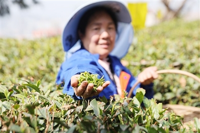 本报4月15日讯 14日上午10时,崂山云雾茶场今年第一批新茶正式开采。在崂山区金家岭街道王家村核心生态茶园内,薄雾轻拢,采茶工头戴斗笠、腰挎竹篓穿梭田间,指尖翻飞间精准采下鲜嫩的“一芽一叶”。200亩生态茶园首日采得的鲜叶,当天即由老师傅手工炒制成干茶,送往茶客舌尖,“抢鲜”传递春天崂山的一口鲜爽。