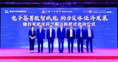 本报5月27日讯 27日,中国工商银行青岛市分行与青岛市行政审批服务局、人民银行青岛市中心支行联合举行 “电子签署数智赋能 助力实体经济发展”银行无纸化开户新模式启动仪式。青岛市行政审批服务局局长路玉军、人民银行青岛市中心支行行长张文武、青岛工行行长蔡谦出席发布仪式并致辞。在市行政审批局的大力支持和青岛人行的精心指导下,青岛工行成功实现了无纸化开户服务模式的系统研发和上线,成为北方地区和系统内首家落地无纸化开户服务模式的商业银行。