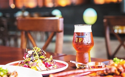 正所谓好酒配好菜,160多道文化融合菜为啤酒而生。由于每一款精酿啤酒的口味特色不同,与之精准搭配的特色菜品也随之变化。“美式IPA的特点是本身味苦但回水果甘,所以一般搭配咸、辣口味的菜品,如肉类、海鲜和披萨。以苦味为主的比利时双料,搭配甜、鲜为主的餐品,如扒肠、甜点最适宜。”1903精酿工坊侍酒师魏紫贤介绍。啤酒不仅能喝,还能入菜“吃”进肚子里。啤酒入菜主要作为烹饪调味品,不光具有增强口感、提鲜杀菌等作用,还可以为菜品加入麦芽香味、果香味等,加入啤酒元素的餐品最终往往还不含酒精。作为中国首家啤酒主题的度假酒店,外观宛若游轮的青岛啤酒时光海岸度假酒店,充分融合青啤文化、海洋文化、艺术特色等,通过风、浪、水等多种元素碰撞,为游客打造出一所海洋梦幻世界。青岛啤酒时光海岸度假酒店内,更有独具特色的沐遇汤谷啤酒SPA,室内汤屋和室外汤池面积1200平方米,产品汇集酵母浴、啤酒精油按摩、酵母皮肤管理、酒花头皮保健、啤酒专业护肤品等,可以满足不同的消费需求。