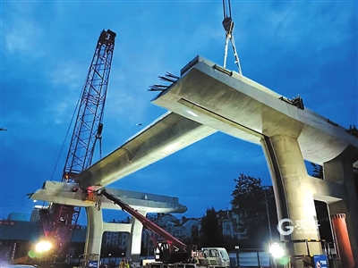 “接下来我们会抢抓晴好天气,高质量推进其他箱梁安装施工。由于现场场地狭小,我们会根据每段桥梁周边环境特点尽快制定安装方案和应急预案,以便更好、更快地完成施工任务。” 青岛巨源建工集团辽阳路快速路三工区施工负责人刘冬伟告诉记者,一片梁的吊装时间大概在一个半小时左右,该标段总共为21跨,计划10月下旬完成全部吊装工作。