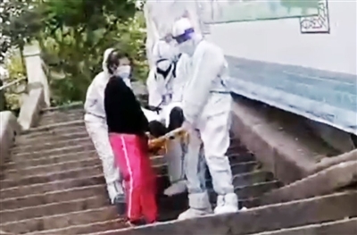 9日上午,临邑路封控区内一名尿毒症患者急需就医透析,志愿者获悉后迅速对接社区,启动紧急预案,接力用担架将患者抬上救护车,送往医院。