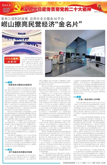 崂山区发布《崂山区促进民营经济高质量发展政策20条》,真金白银帮扶企业,让企业有实实在在的获得感。政策从激发创新活力、培育发展市场主体、增强企业核心竞争力、畅通企业融资渠道、推进开放型经济、突出人才引育等六大方面靶向发力,从企业发展全生命周期、产业壮大全链条、产品创新创造到市场运作全过程等多个层级提供支持和保障,预计每年将为企业兑付资金2亿元以上。今年以来,崂山区累计兑现政策资金达21.3亿元,确保企业真真切切感受到政策的“温度”,将政策红利转为企业发展的动能。