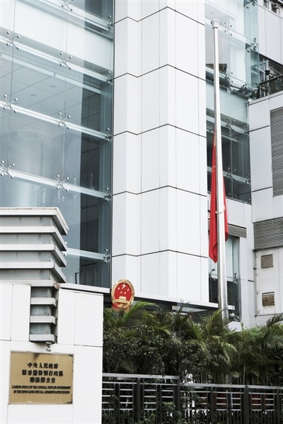 12月1日,香港中联办下半旗志哀,悼念江泽民同志逝世。新华社发