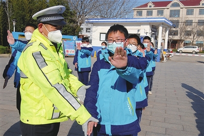 本报12月1日讯 “过马路要遵守信号灯,牢记‘一停二看三通过’,不要在道路上嬉戏打闹、翻越护栏、随意横穿马路。”12月1日,在“全国交通安全日”来临之际,青岛市公安局即墨分局蓝村派出所联合即墨交警大队蓝村中队,走进辖区的蓝村中学,通过课堂教学、常见交通标识讲解、户外模拟场景实地感受的方式,提升学生们的交通安全意识。
