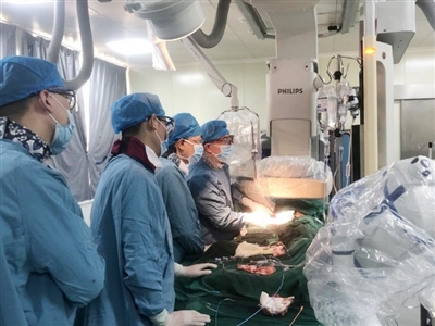 74岁的市民王女士(化名)被心悸、胸闷折磨长达10年之久,自认为只是“消化不良,胃不好”,直至今年10月上旬状况加重并伴胸闷气短,才到市立医院本部就诊,诊断为“重度主动脉瓣狭窄、不稳定型心绞痛”。如不及时治疗,患者随时面临心衰加重、猝死等生命危险。鉴于患者病情危重,本部心内一科随即发起全院会诊,联合心外科、超声科、ICU、介入放射科、麻醉手术科、放射科等科室组成MDT团队,最终决定为患者实行“一站式”经皮主动脉球囊反搏术+心脏临时起搏器保护下行冠状动脉血管内超声+冠脉内旋磨术+药物洗脱冠状动脉支架置入+经导管主动脉瓣置换术+髂动脉支架置入术+股动脉成形术。由于老人的主动脉瓣重度狭窄,心功能较差,同时合并冠脉问题,外周血管入路条件极差,行TAVR手术面临严峻挑战,术中可能出现循环崩溃、瓣膜不到位或冠脉阻塞、瓣中漏、外周血管并发症等不良后果。本部心内一科王正忠主任带领手术团队,联合微创介入治疗中心,心外科、麻醉科、超声科以及DSA技师护理团队等多学科密切合作下,逐一攻克术中持续低血压、冠脉痉挛、外周血管闭塞并发症等重重困难,通过联合手术,“一站式”解决了重度冠脉钙化狭窄、重度主动脉瓣狭窄和严重外周动脉狭窄闭塞等问题。术中,患者生命体征平稳。术后患者血流动力学得到明显改善。又先后经过心脏中心ICU、CCU近一个月的接力监护复苏康复,患者顺利康复出院。病人及家属十分感激,“真的是太不容易了,是市立医院帮俺捡回一条命!”
