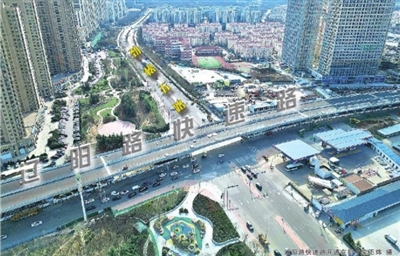 16日上午,室外寒意逼人,来到辽阳路快速路施工现场,记者被眼前蜿蜒伸展的沥青桥面震撼住了。太阳高悬,桥梁两侧是高低不一的大楼;地面上,车流如溪,涓涓不断;桥面上,各类机械和穿着马甲的工人熙熙攘攘。看着眼前的景象,居民们格外盼望着开通的日子,将彻底和拥堵告别。