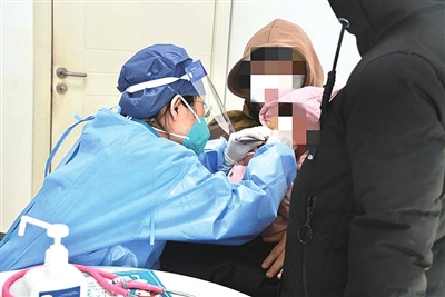 虽然医护人员加班加点,前赴后继投入到工作中,但患者增多和人手不足,不断给救治工作带来新的挑战。在发热门诊的现场,仍有一半以上的患者在候诊。“由于现场等候的患者较多,医生上岗后都是争分夺秒开展工作。大家倒下了,都是在家休息个两三天,只要退了烧,还能从床上爬起来,就回来干活。我们的工作人员一直都是这么互相鼓劲。” 负责发热门诊工作的感染科主任佟建宁说。
