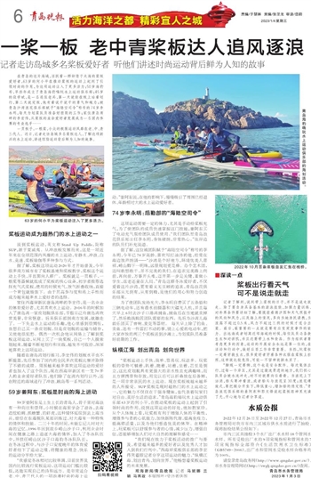 “我们现在致力于桨板活动的推广与普及,希望越来越多的爱好者以及优秀人才加入到我们行列中。”西海岸桨板俱乐部的李宏伟笑着跟记者分享这项运动的魅力。“纵横江海、划出青岛、划向世界。”他畅想着桨板运动的未来发展。