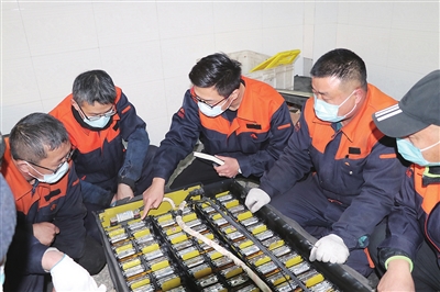 上任伊始,杜超就将目光瞄准了这些车辆,电池由一块块电芯组成。“电池衰减,并不是所有的电芯都没用了,有时只是其中部分电芯衰减厉害影响整体运行。”同样以一辆8米左右的纯电动公交车为例,电池中有500多块电芯。如何找出其中衰减厉害的电芯,做到分容均衡,让电池恢复动力,对修理人员是一个巨大考验。“因为是核心技术,电池的分容均衡,都被一些电池厂家所把控。”杜超带领同事,通过在线远程学习和线下自主研究,在城运汽服集团的支持下,先期投资20余万元,建成了我市公共交通系统首个锂电池分容检测基地。车辆电芯被一块块分解出来,然后在锂电池分容检测仪上分容均衡。“检测仪的电压只有3伏左右,分容均衡时,需要工作人员24小时不间断记录情况。”完成后,按照每块电芯的充电情况,杜超和同事分门别类摆放起来,将其中相近的电芯组合在一起,重新安装后可以让车辆再次运行起来。