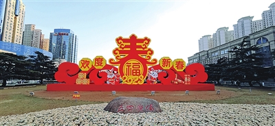 本报1月11日讯 春节临近,年味渐浓,由市贸促会承办的2023年春节大型主题景观造型“迎春送福”日前在五四广场精彩亮相,将展示至2月6日,为岛城营造出喜庆祥和的节日氛围。本次景观以中国红、正黄色为主色调,主体造型为大型立体“春”字,字体下半部分镶嵌“福”字、2023字样,两侧辅以祥云图案、欢度新春四个字作为装饰,下方摆放鞭炮、玉兔、礼盒等微造型,寓意中国人民乘着党的二十大的春风,守正创新,踔厉奋发,怀着对未来的美好向往勇毅前行。